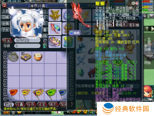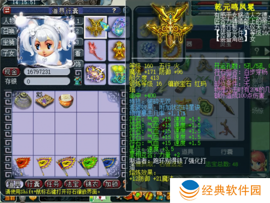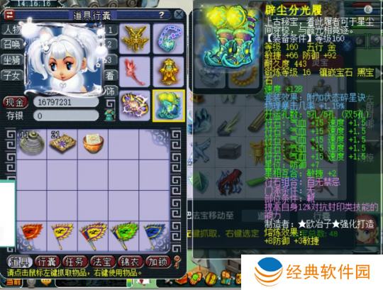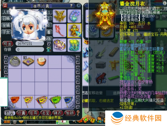 160级破血狂功女衣,16锻月亮石,熔炼后防御+480,敏捷+31,力量+37。
