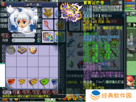 160级腰带,附加物暴几率+1.18%,16锻黑宝石,熔炼后防御+95,气血+432。