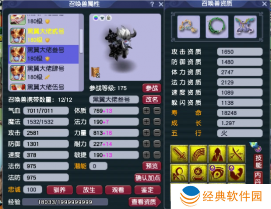 无符面板属性,气血9933,伤害3464,防御1951,速度866。