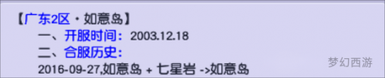 如意岛唯一的合区历史是2016年9月27日的第四十五次合服。在这次合服中,如意岛和七星岩成功“牵手”。