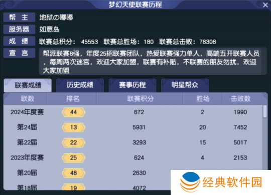 帮派联赛赛场上,如意岛表现最好的帮派是“梦幻天使”。“梦幻天使”在2023年和2024年,连续两年成功晋级帮派联赛年度总决赛。