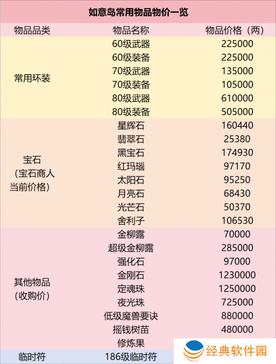 接着,让我们来看看如意岛常用物品的物价情况: