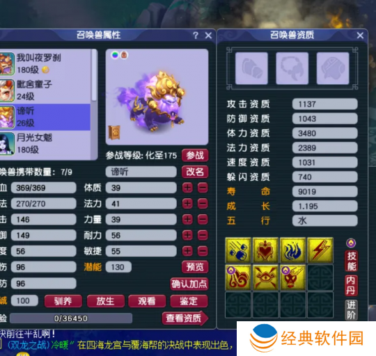 最近,有老板在炼妖谛听的时候,虽然提前垫书了,但没想到直接合出7技能谛听,感觉直接可以用了。身上有观照带着两**+两小法也是四轮车,还有高级魔之心,带个高法连套打帮派联赛遥遥领先。
