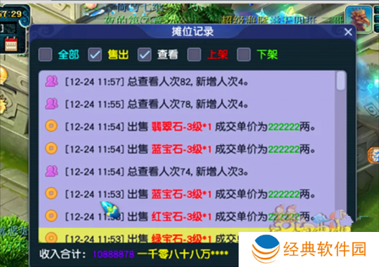 在本周维护后,新资料片的内容就在所有的服务新的上线了。也许是因为天狗气吞万象技能的放出,让吸收宝石迎来了新的春天,3级的宝石甚至都卖到了22w。摆摊仅一个小时就收获了1080w梦幻币的收入。
