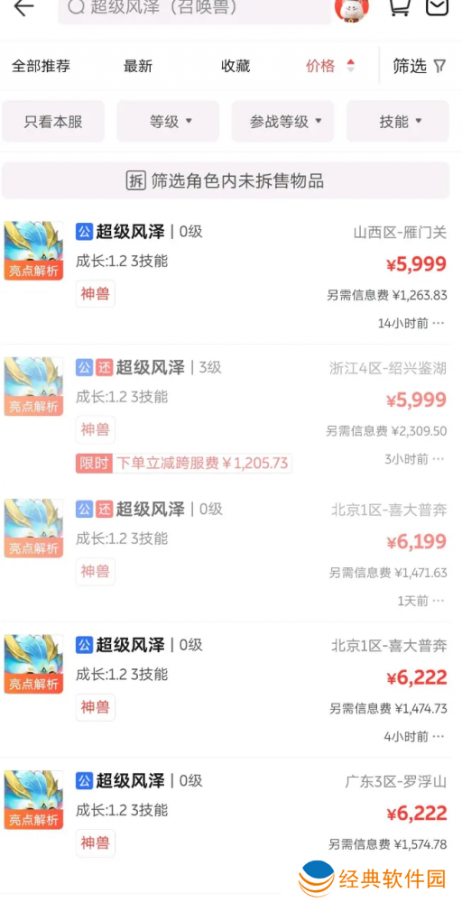 超级风泽跌价严重,主要原因是产出太多,一天基本能出三十多只,这神兽作用有限,价格能高到哪去?价格不到6000元,就想问下那位两万入手的老板的心理阴影面积,估计现在都心死。