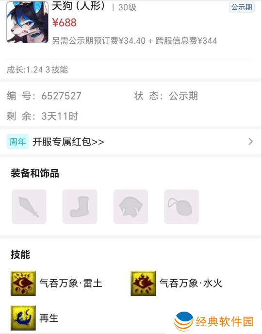 根据目前梦幻精灵的描述,天狗的两种不同属性的气吞万象技能,是不能共存的。不过在天狗刚上线测试服的时候,就有玩家通过炼妖合出了同时拥有两种气吞万象技能的天狗。经过调整后,这样的天狗可以说是绝版孤品了,这位玩家还将它上架了藏宝阁,大家觉得值得买回来收藏吗?