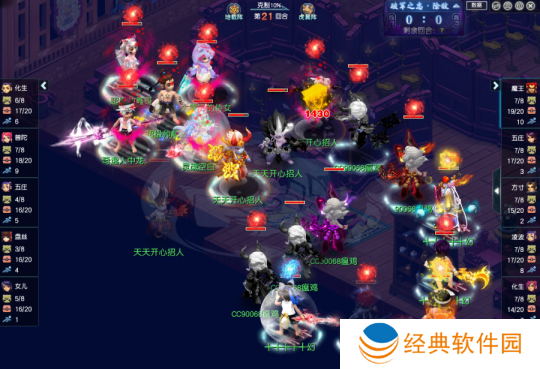 【夫子庙】凭借凌波城和魔王寨的爆炸伤害,仅仅第21回合就击飞了对手12只召唤兽,使得【南阳府】被迫召唤血宠应对。【南阳府】的这一决定正中【夫子庙】下怀,因为【南阳府】不敢轻易召唤攻宠,【夫子庙】使用天地同寿时便无须担心被对手的攻宠击杀。