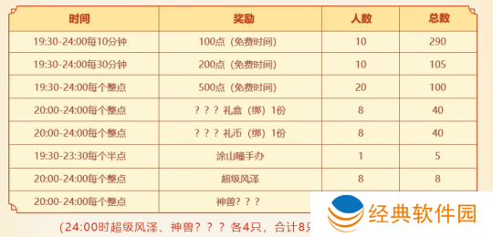 梦幻春晚开始后,大家只需在线就可以抽到奖励。活动期间每10分钟,会抽10张100点点卡,10张200点点卡;19:30-24:00每个整点会抽20张500点点卡。20:00-24:00每个整点会抽8份锦衣礼盒、祥瑞礼币。