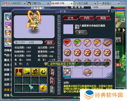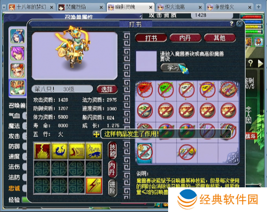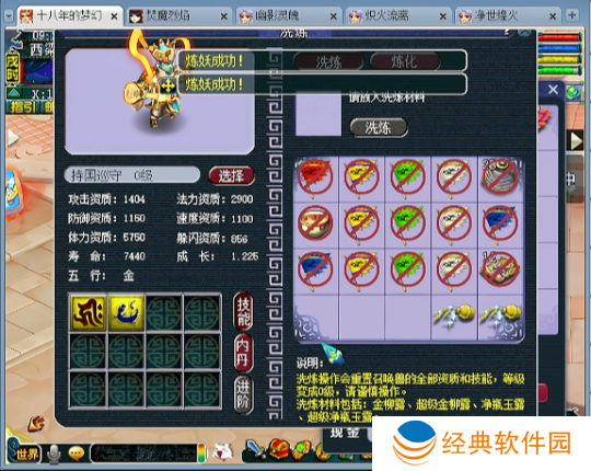 刚才系统送的超六派上了用场,洗一洗随便合出个五技能童子就能回血。四个洗出俩技能。