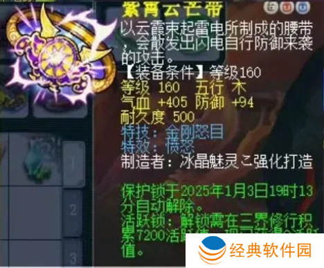 前段时间诞生服战神装,160级腰带,气血+405,防御+94,特技是金刚怒目,特效是愤怒。这很极品了,估计号主兴奋得睡不着了,肯定很期盼解锁那一天出掉,不知道会被哪位服战老板收入囊中?