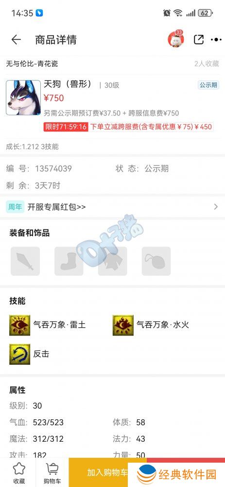 虽然天狗召唤兽取消了两个气吞万象共存的问题,但市面上仍流出了“绝版双眼”。今天,小生就偶然发现,藏宝阁出现了几只“双眼”天狗,其中最低摆价就是750元。很显然双眼不能分别触发、也不具备回炉功能,买回去也只剩下收藏的作用了,大家觉得这笔费用值得吗?
