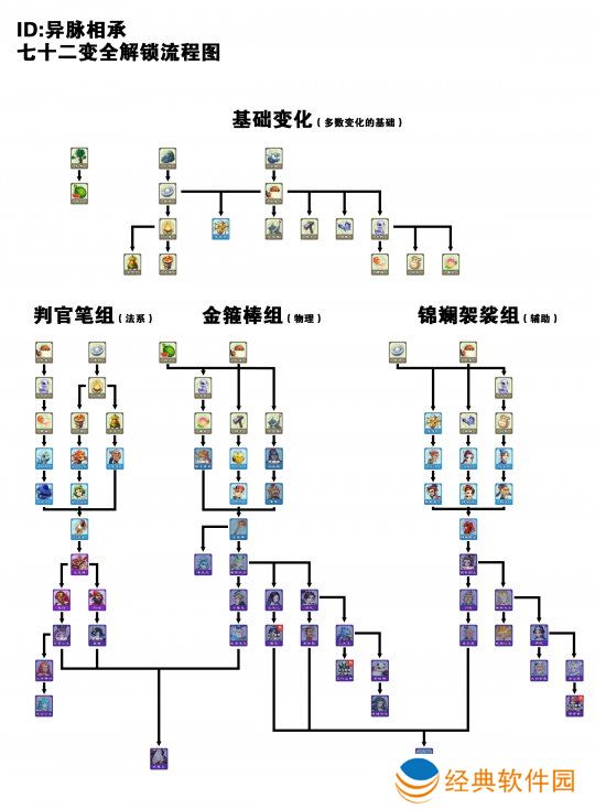 新推出的七十二变玩法共有66种变身造型,如果全部解锁也要花费不少时间。有位叫“异脉相承”的玩家整理出了一份流程图,如果你只想解锁某种类型的变身卡,对着这张图来做任务能节省不少时间!