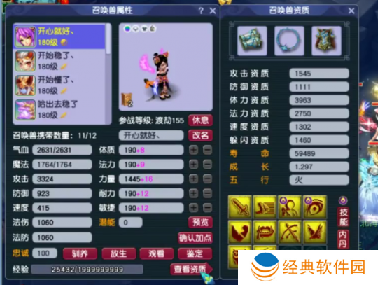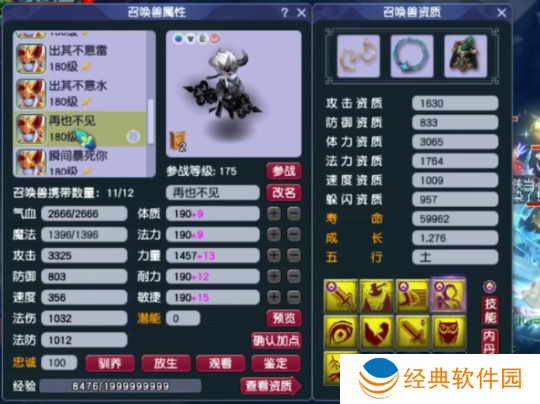120级耳饰,主属性法防,下排3速度,带8级163。