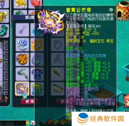 160级愤怒腰带,16锻黑宝石,熔炼后防御+102,气血+404。