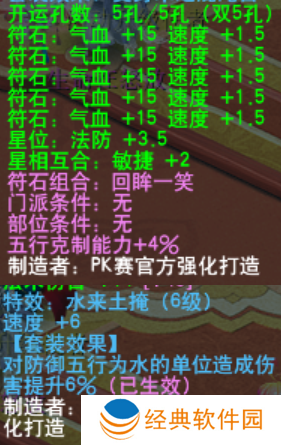 装备6级水来土掩钟灵石套装(6%),五行克制时可以提升约10%伤害。