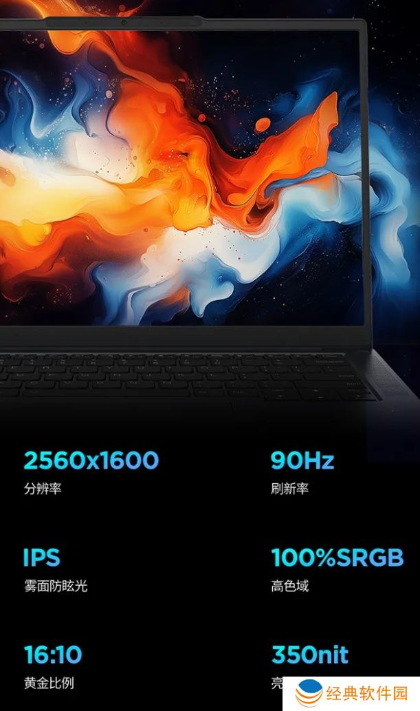 14.5 英寸 IPS 显示屏,2560 x 1600 分辨率,90Hz 刷新率,100% sRGB 色域;
