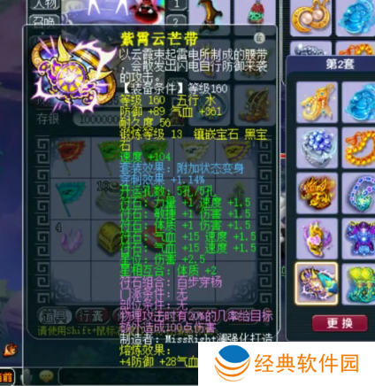 160级腰带,附加穿刺效果+1.14%,13锻黑宝石,熔炼后防御+93,气血+389。