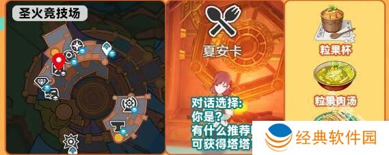 3、纳塔圣火竞技场,找到夏安卡,通过对话可以购买:粒果杯、粒果肉汤、塔塔可。
