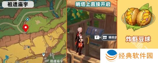 13、祖遗庙宇,一个哨塔上可以通过开启宝箱获得炸虾豆球。