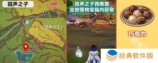 11、在回声之子,西南面击败怪物,宝箱中可以获取到巧克力。