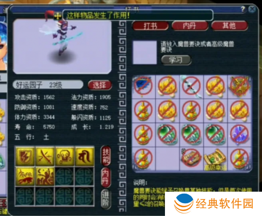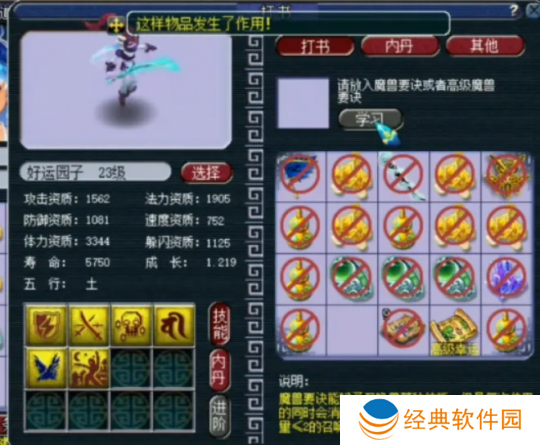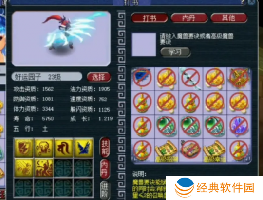 这是6技能夜罗刹,还带着四个特殊技能,分别是法术防御+死亡召唤+净台+夜舞倾城。笔者感觉都没必要打书,直接用挺好的,但是老板原计划就是打书,看看特殊技能剩几个。