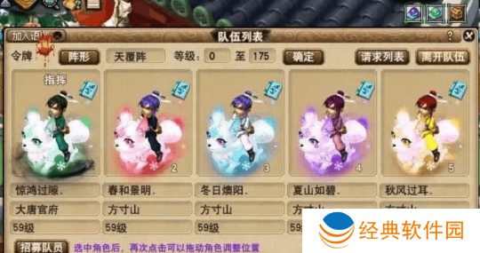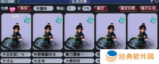 1方寸山1化生寺3大唐官府队伍,该组合包含了治疗、封印和点杀,即便是一些难度任务也没有问题,关键是人物造型都是一身黑衣服,这种队伍自己玩的也比较喜欢。
