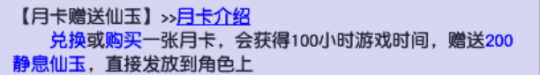 兑换一张月卡可以获赠200点仙玉
