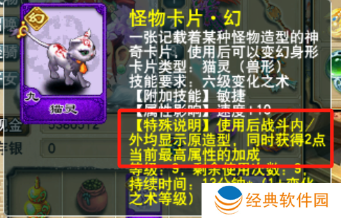 毕竟,当咱们使用幻化过的变身卡变身后,咱的最高属性点会在变身持续期间提升2点(进阶卡是3点)哦。