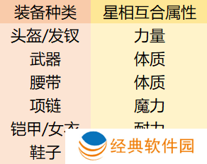 不同装备“星相互合”增加属性如下: