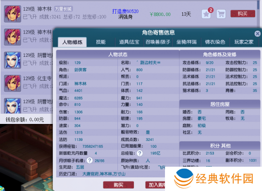 129级飞升、满修、满召唤兽修炼角色的价格已经降至8800,比高峰时少了一半左右。