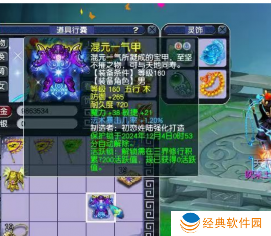 前段时间一个老板出的这件衣服终于双锁结束了,太不容易了,已经上架了,160级的衣服,防御+265,魔力+38,敏捷+21,附加法术暴击几率+1.2%,这个衣服是真香的,满法术暴击几率的,而且双加也挺高,还能再熔炼,就是双锁的原因,没刚出的时候那么激动了,心态都平整了!