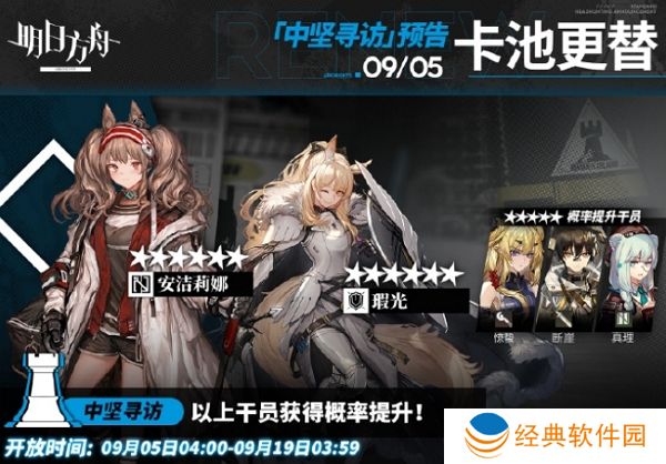明日方舟在不久前正式发布了有关于9月5日中坚寻访的相关信息,本次进店干员为安洁莉娜和惊蛰。