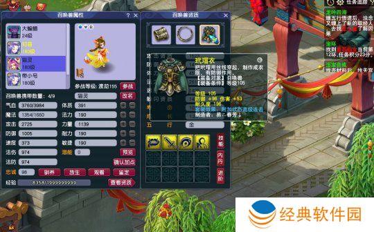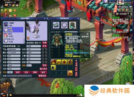 第一只宝宝是4技能蓝书猫灵,穿戴了50+伤的高连套,虽然是蓝书不过面板属性还可以,用来刷刷日常活动不是问题。