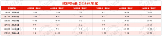 从60-80级环装价格来看,依然是刚开服和活跃度较高的服务器价格水平偏高,但其主要是受到口袋版、跑环玩家人数、打造装备人数的影响。不过,环装价格也会影响制造指南书、百炼精铁和灵饰价格,建议大家根据自身需求灵活选择。