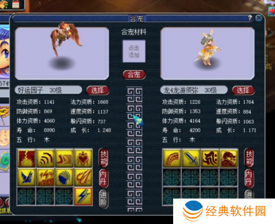 8技能出其不意雷鸟人+4技能须弥龙游龙鲤,这组胚子炼妖也有三个特殊技能,看看能合上几个特殊技能呢?