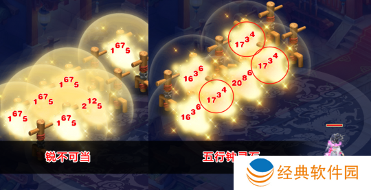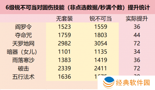 当咱的“地府阎罗令秒7,单体输出2000”时,咱使用6级锐不可当套装依然只能提升252点。但此时,咱使用6级五行克制套装,每克制1个目标总输出可提升120点,只需要克制3个目标即可超过6级锐不可当的增伤收益。